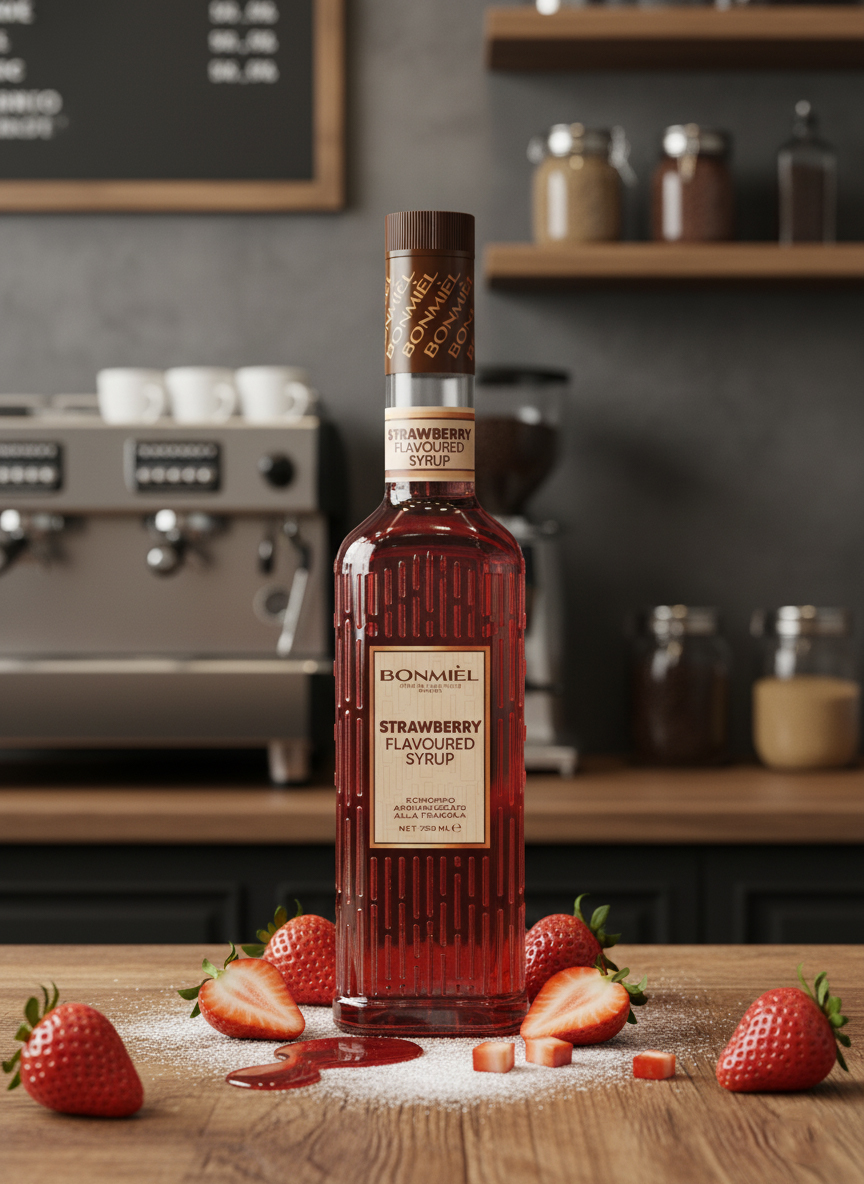 Bonmiel Çilek Şurubu, içeceklerde ve tatlılarda canlı bir renk, taze bir aroma ve zarif bir tat dengesi sunar.